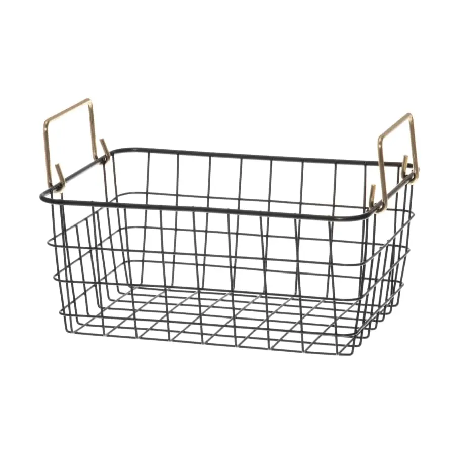 The beautiful metal baskets can be used for many purposes, including in the kitchen, bathroom and hallway. The baskets are also suitable for gift baskets. Golden handles. Size 31 x 22,5 x 14 cm.