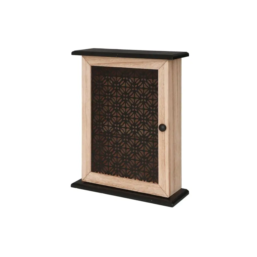 A key cabinet with a beautiful decorative cutout on the door. Six hooks.