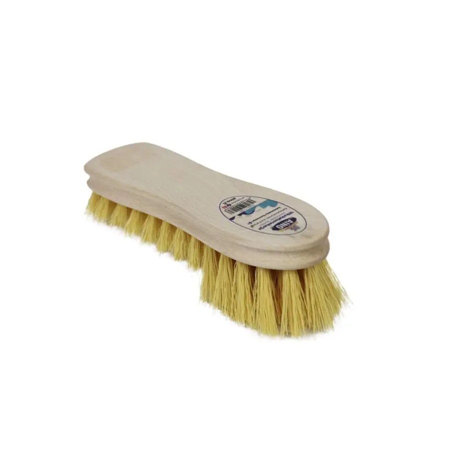 This Aino brush is made in Finland. It has a wooden frame and the bristles are synthetic fibre.