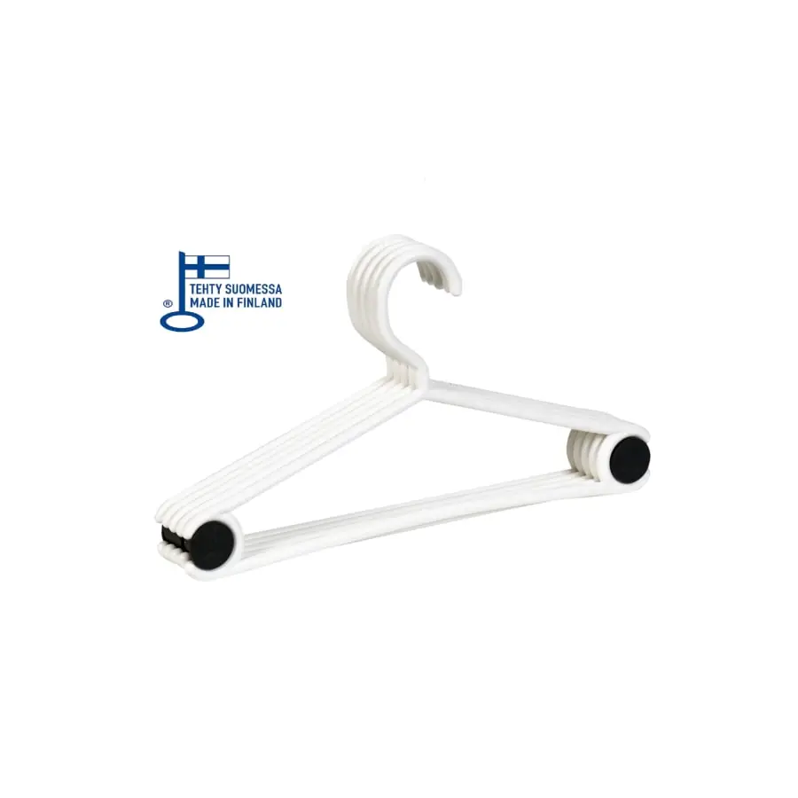 Aino kids clothes hangers are suitable for children’s clothes. Made of plastic. Color: white. Made in Finland.