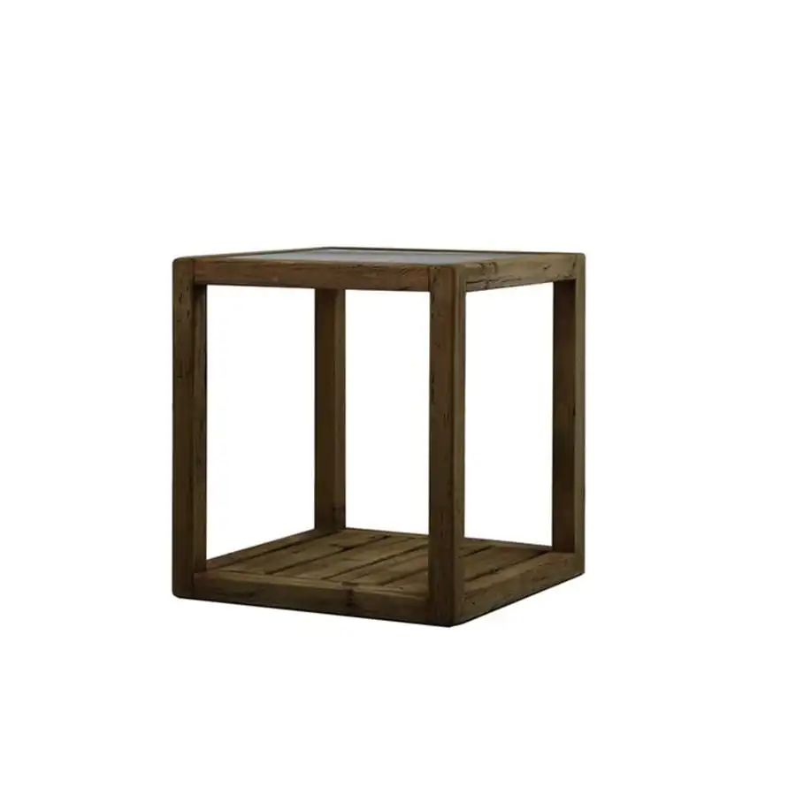 A small square side table made of rustic recycled wood. Size 60 x 60 x 65cm.
