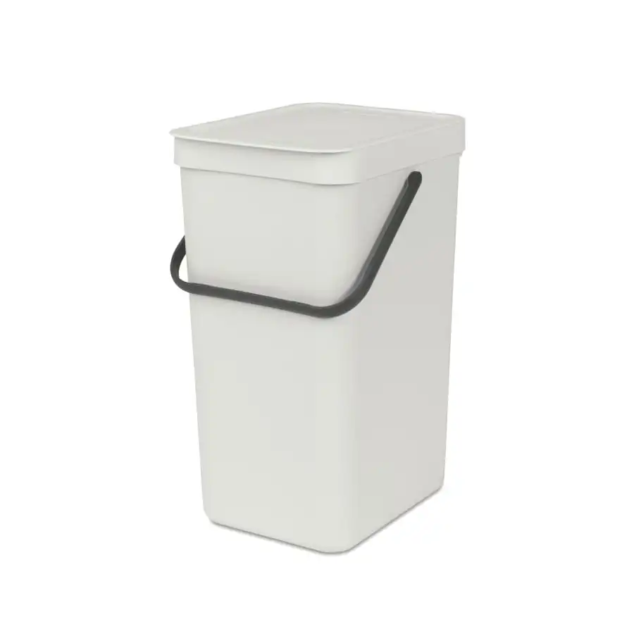 Collecting empty packaging, bottles, or cans separately? Make it easy on yourself, organise it all with this 16 litre Brabantia Sort & Go Recycle Bin. Put it in any corner, flat to the wall, or save even more floorspace and hang it from its included wall bracket. Time to empty it? Piece of cake, because of the large handle and bottom grip for easy carrying and emptying. Sort & go!