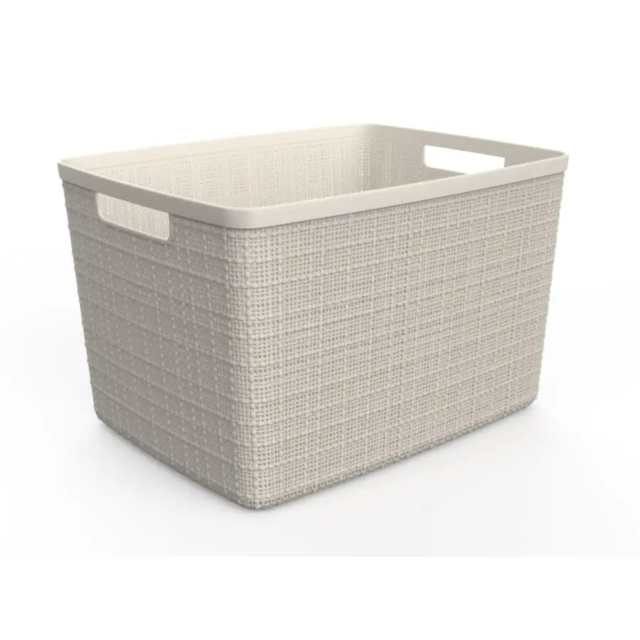 Curvers Jute förvaringslåda har en ny sorts yta som påminner om jutetyg. Hålen i ändarna av lådan underlättar lyft.