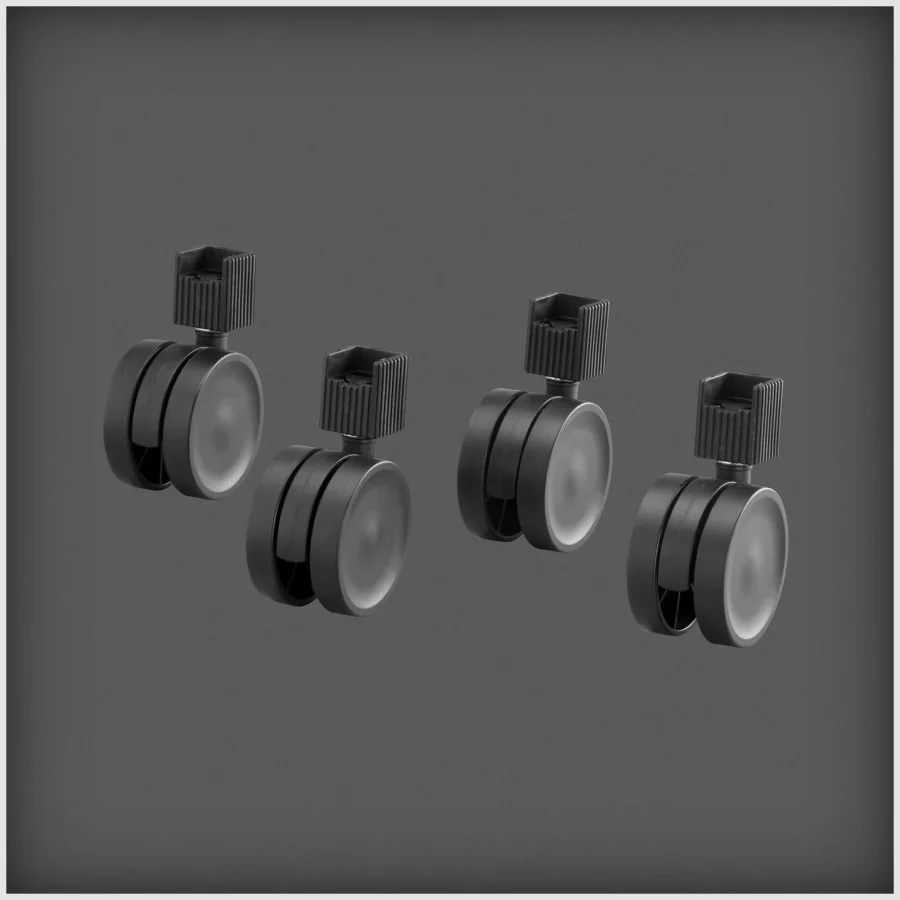 Elfa rack wheels are a handy accessory for a basket rack. The wheels make it easy to move the rack from one place to another. 4 pcs/pack. Color black. Material plastic/steel.