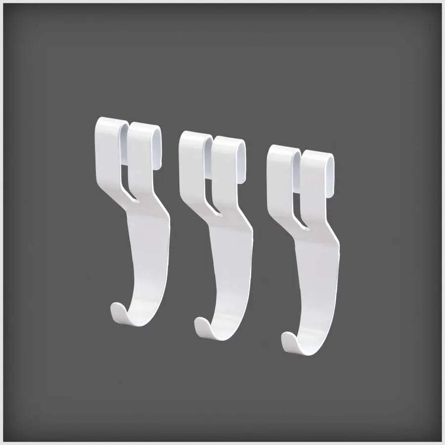 The Elfa universal hook is attached to the wire shelf in the desired position. Installation without tools. The sturdy hook is suitable for e.g. for jewelry or other small items. Three hooks in the package. Material steel.