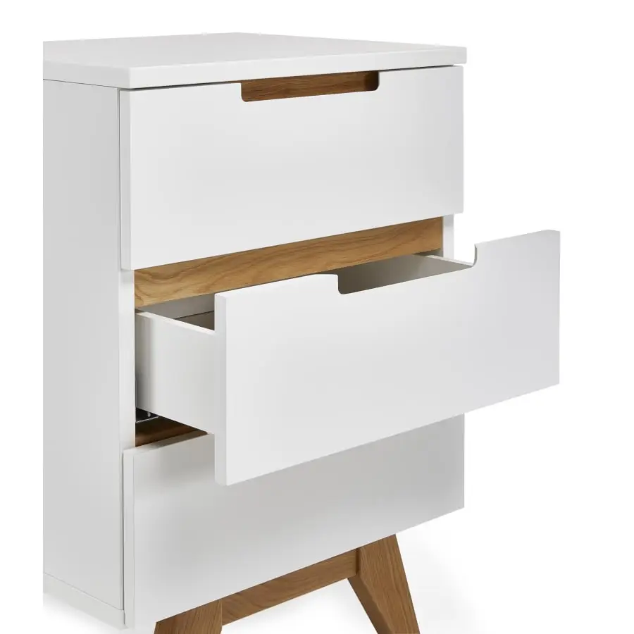 The high-quality Hanko dresser has a painted mdf frame, solid oak legs/plinth. Three spacious storage drawers. Noisy slide rails in the boxes. Product dimensions: L48 x W38 x H70cm. Inside dimensions of the box: L40 x W33 x H8cm. Foot height 16cm. The product is delivered already assembled, only the installation of the plinth. Assembly instructions included.