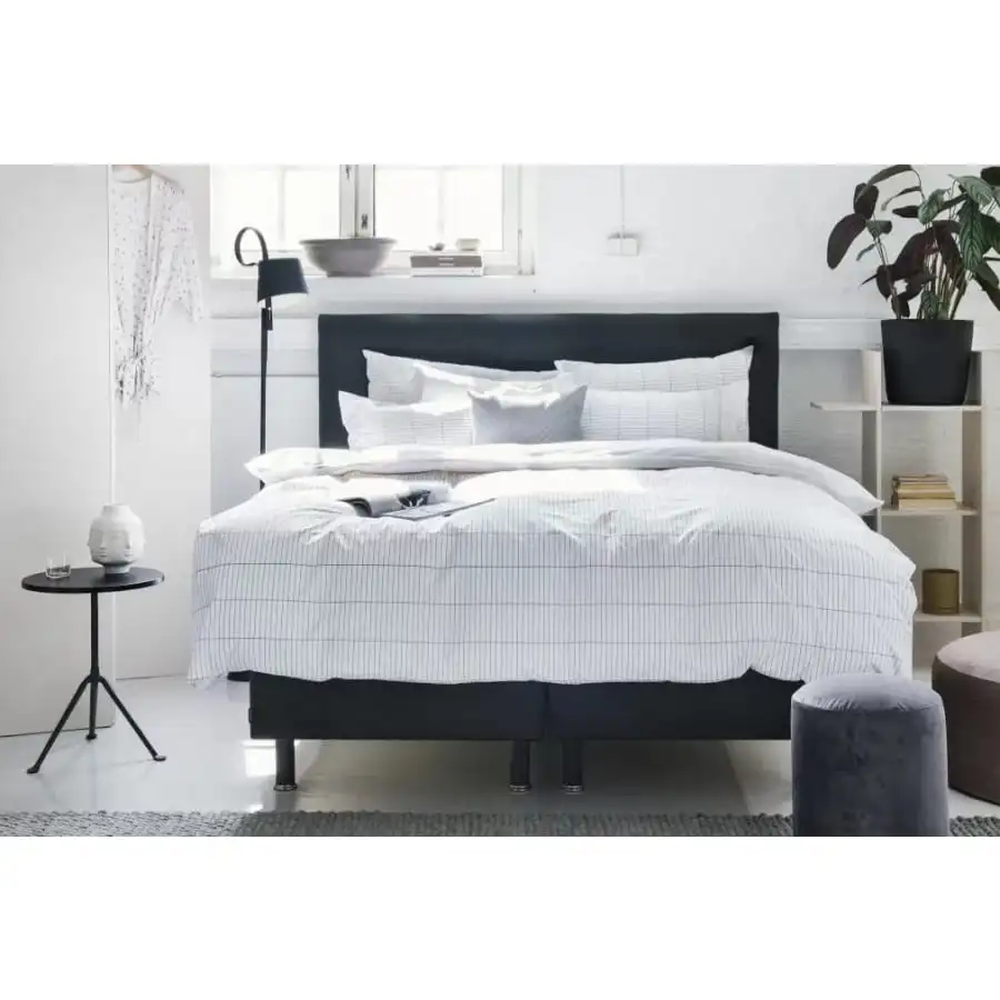 The luxurious Familon Hotel headboard gives the final touch to the bedroom of your dreams. A stylish hotel-like headboard with vertical stitching is a striking addition to the Hotel Yankee bed. The padded dark gray headboard creates pleasant acoustics in the bedroom. The headboard, which stands between the bed and the wall with its own metal legs, does not need to be attached to the bed or the wall. Hotel headboards are designed for 160–180 cm wide double beds.
