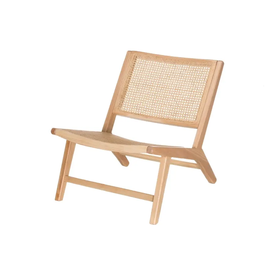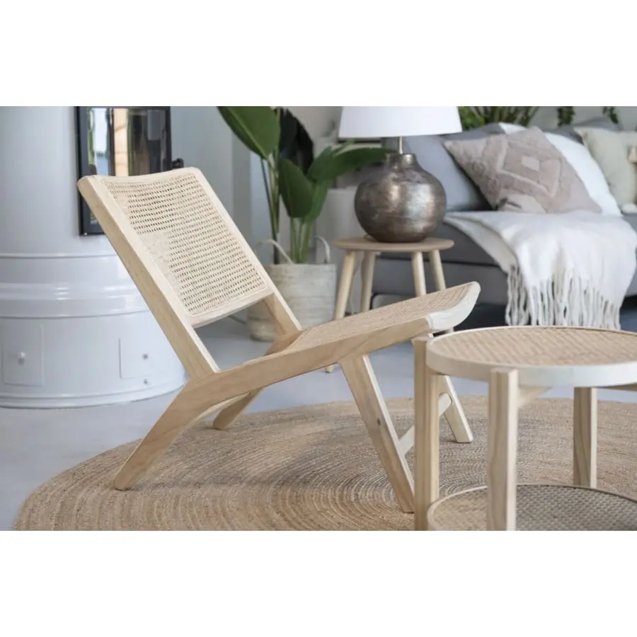 The frame of the stylish, wide profile chair is made of rubber wood and the braids are made of durable rattan. Sturdy and comfortable seat for many spaces. Maximum load capacity 200 kg.