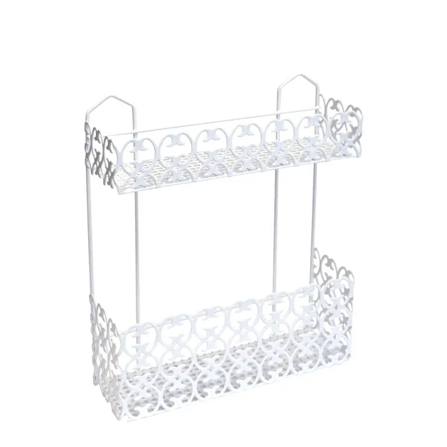 Decorative wall shelf. Material white painted metal. 2-level. Dimensions: height 35 cm and width 32 cm.