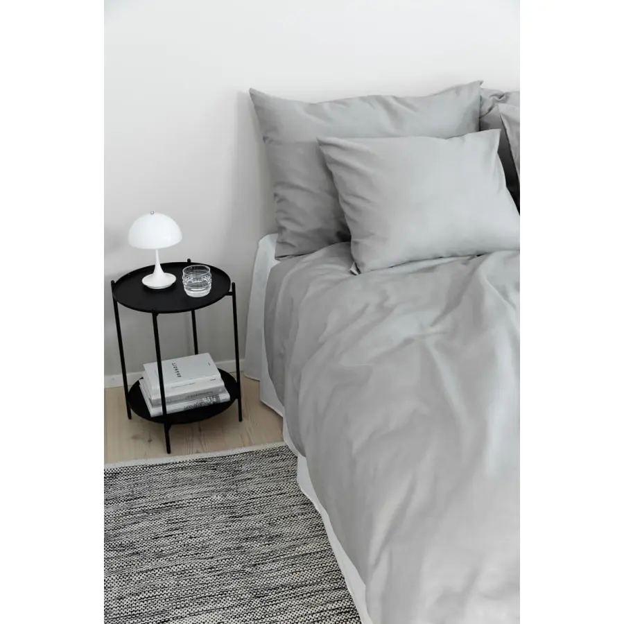 Mattsvart sidobord i två plan. Metall, diameter 35 cm, höjd 50 cm.