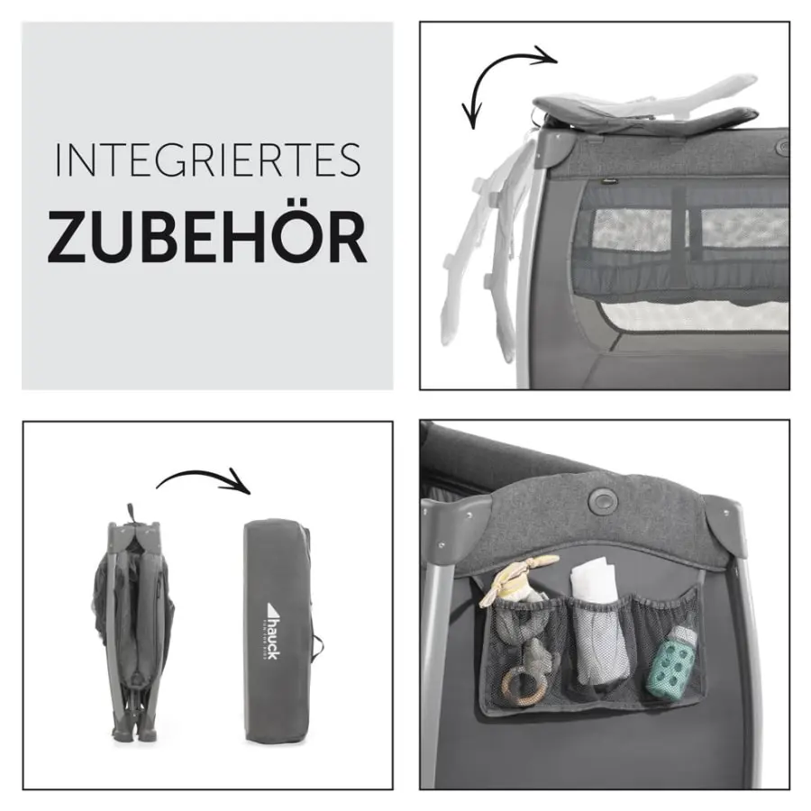With the integrated accessories, the Play N Relax Center offers you many possible uses in the smallest of spaces. Your child can sleep and play here, you can change their diapers or simply take the bed with you when you travel. So you are flexible and mobile from birth. A folding base is already included, a separately available additional mattress and the matching fitted sheet measuring 120 x 60 cm ensure even more sleeping comfort.