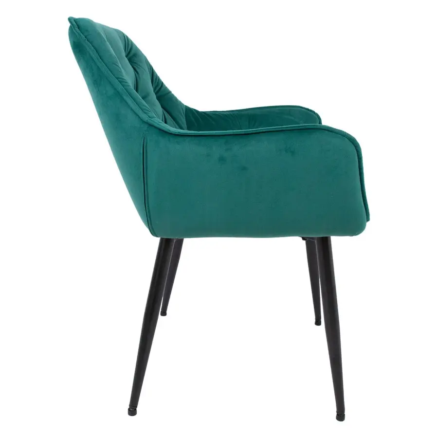 Chair BRITA 61x57x83cm, yellow velvet. The comfortably shaped seat is lightly upholstered and covered with yellow velvet fabric. The height of the seat is 47.5 cm. Cover material: 100% polyester, Martindale 25,000. Seat frame: metal and plywood. Upholstery: polyurethane foam. The metal legs are coated with black powder paint. Weight limit 120 kg.