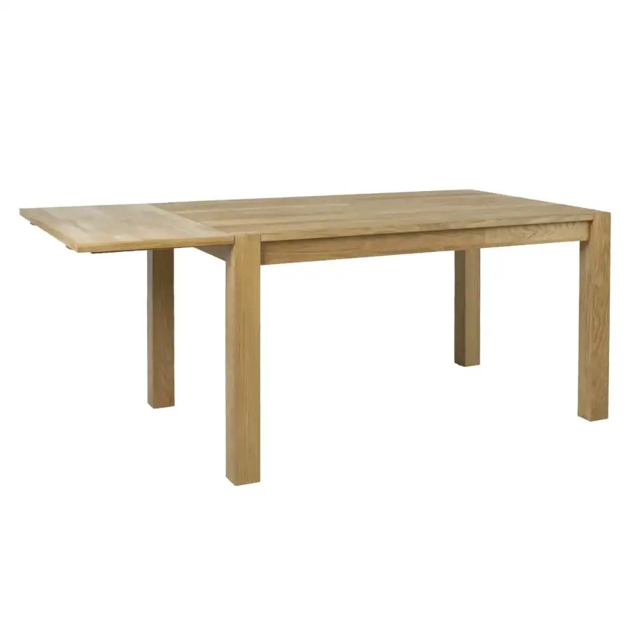 Stylish dining table Chicago New. Dining table top made of MDF and finished with natural oak veneer. The legs are made of solid wood and finished with oak veneer. 45cm extension pieces for both ends of the table can be purchased separately. (45x90cm). You can choose four length options for the table: 90, 120, 140 or 180cm.