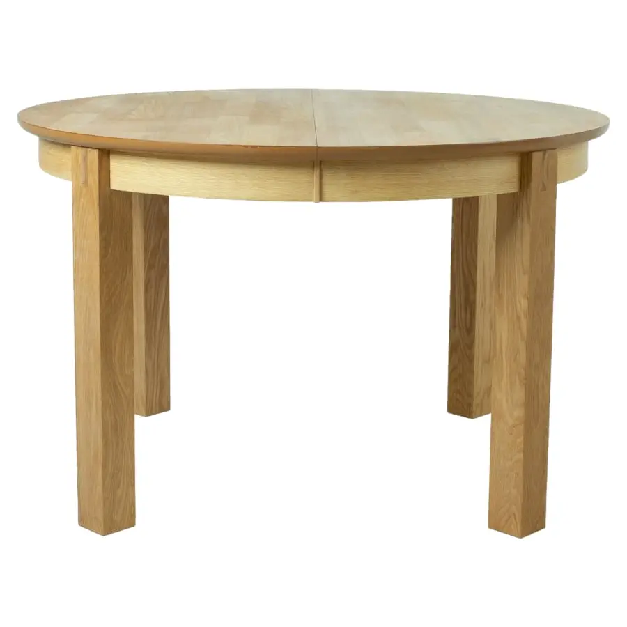Stylish dining table Chicago New. Dining table top made of MDF and finished with natural oak veneer. The legs are made of solid wood and finished with oak veneer. The table can be extended to 120/160 cm.