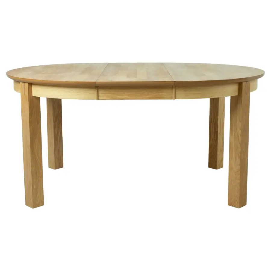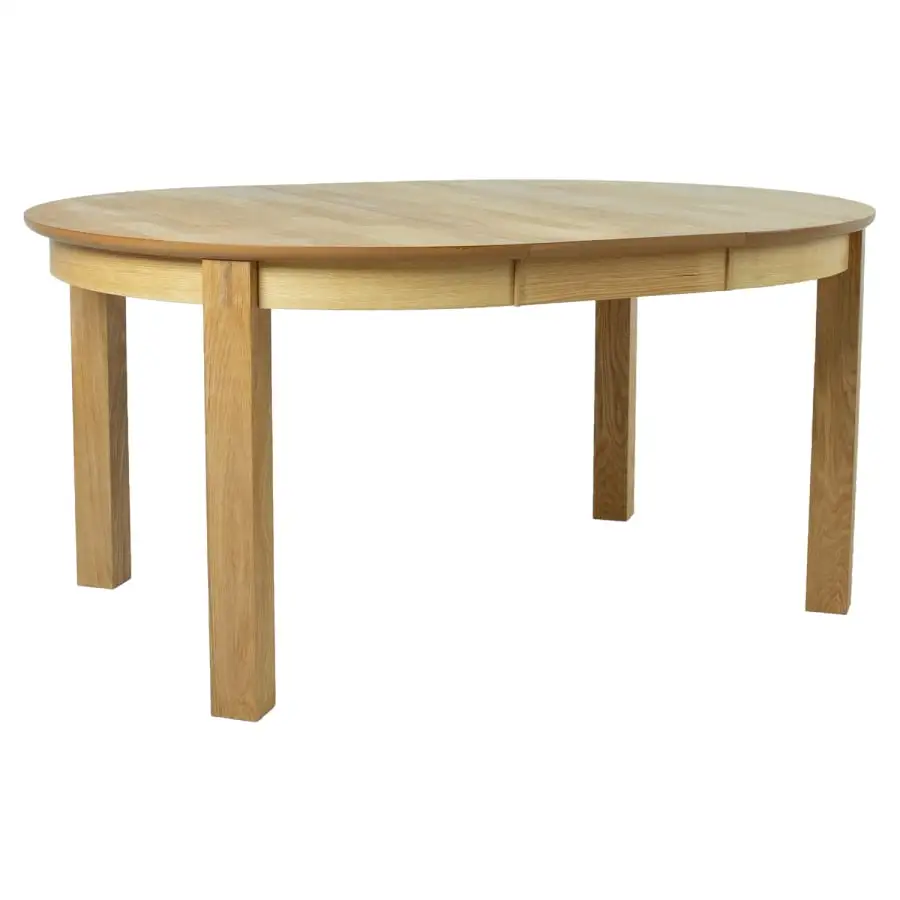 Stilrent matbord Chicago Nytt. Matbordsskiva av MDF och avslutad med naturlig ekfaner. Benen är gjorda av massivt trä och avslutade med ekfaner. Bordet kan förlängas till 120/160 cm.