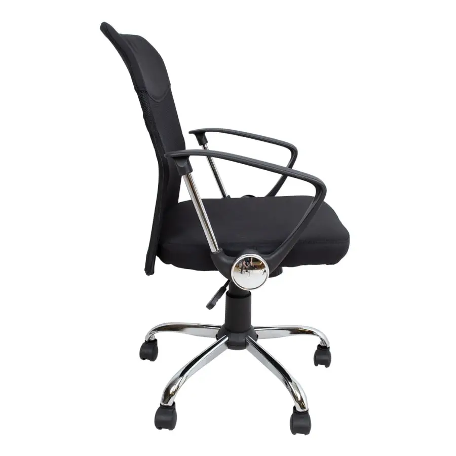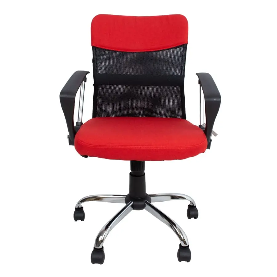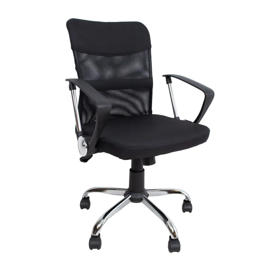 Hieman verhoiltu istuin ja selkänojan yläosa on päällystetty polyesterikankaalla. Selkänojan keskiosa on päällystetty polyesteriverkkokankaalla. Kallistusmekanismi voidaan lukita yhteen asentoon. Pneumaattinen istuimen korkeuden säätö. Käsinojat on valmistettu muovista ja metallista. 5-piikkinen metallijalusta, R30cm. Pyörät ovat muovia, 50 mm.
