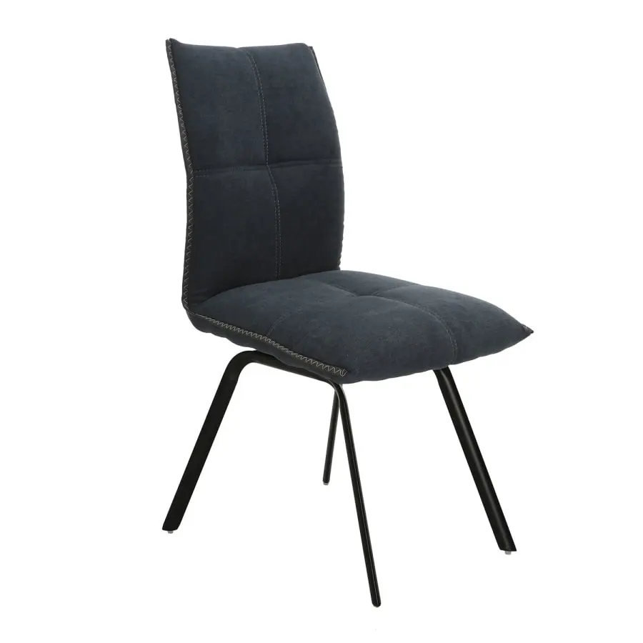 Chair EDDY 50x56xH89cm. The convenient and stylish dining chair is covered with gray polyester fabric. The seat of the chair is upholstered. The black matte metal legs are powder coated. Seat height 48cm, seat width 47cm, seat depth 45cm. Backrest height 47cm. Weight limit 120kg.