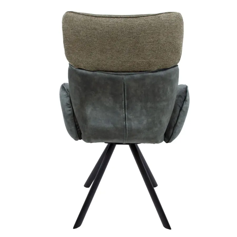 Chair EDDY with armrests 63x55xH89cm velvet. The convenient and stylish dining chair is covered with polyester fabric. The chair has armrests and its seat is upholstered. The fabric of the upper part of the backrest is a slightly different shade. The black matte metal legs are powder coated. Seat height 48cm, seat width 45cm, seat depth 42cm. Backrest height 47cm. Armrest height from the ground 64cm. Weight limit 120kg.