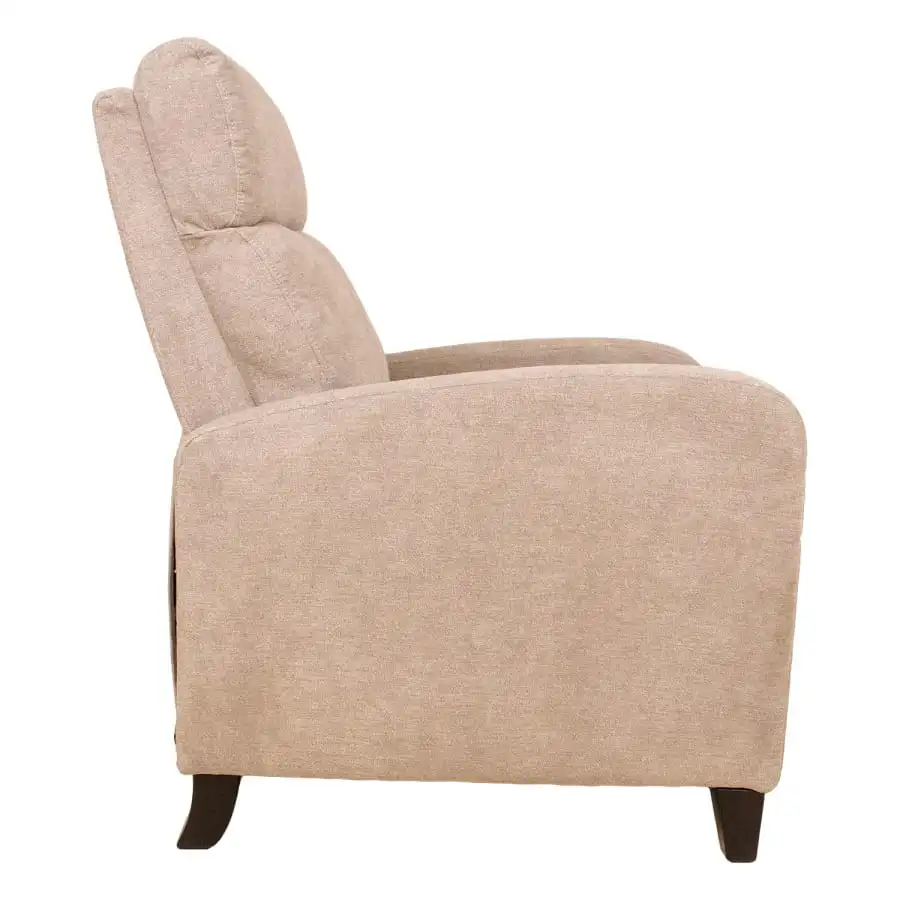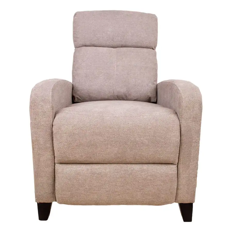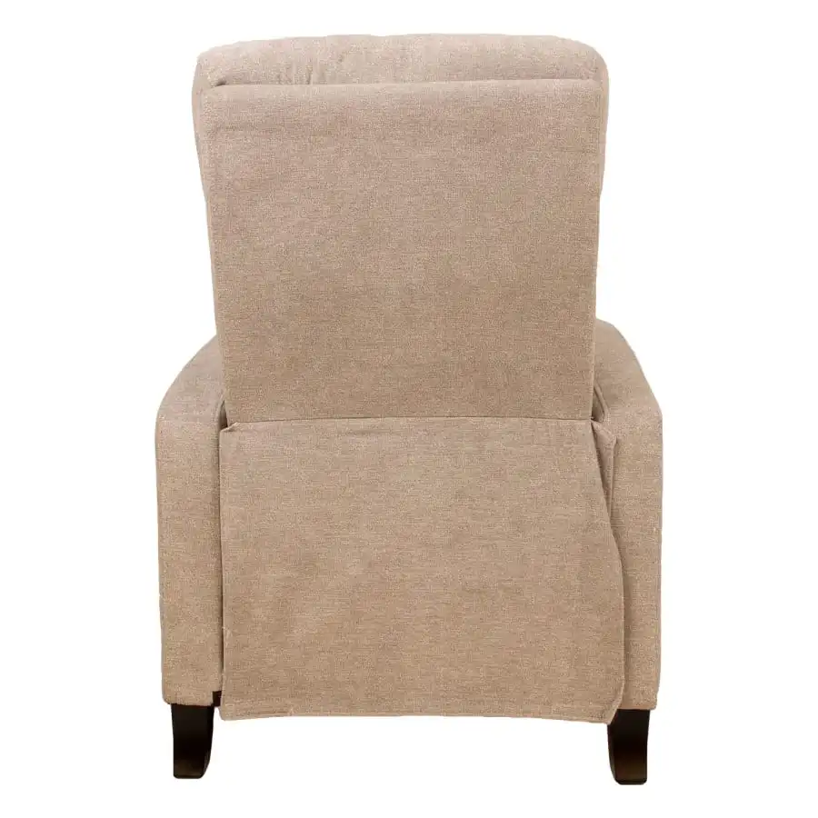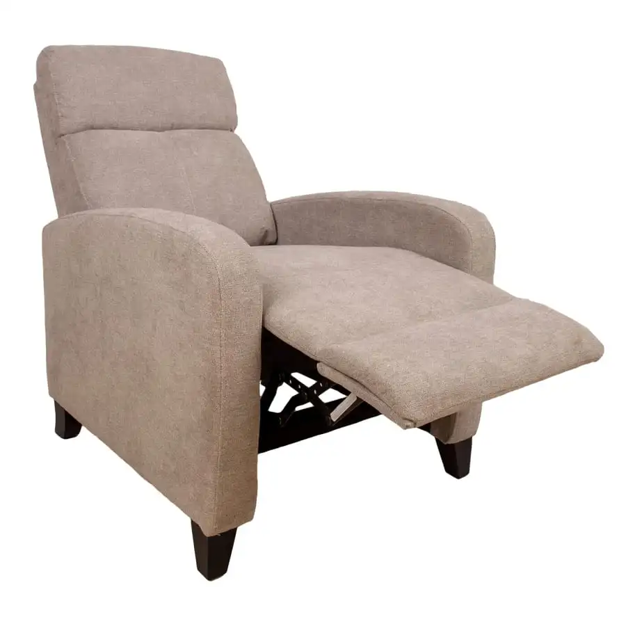 The position of the backrest and footrest can be changed with a manual push mechanism. This type of mechanism does not have a button or lever to adjust the position of the armchair. The mechanism starts when pressure is applied to the backrest. Cover material: 100% polyester. Frame: wood, metal. Upholstery: polyurethane foam. Overall dimensions 68x91xH100cm.