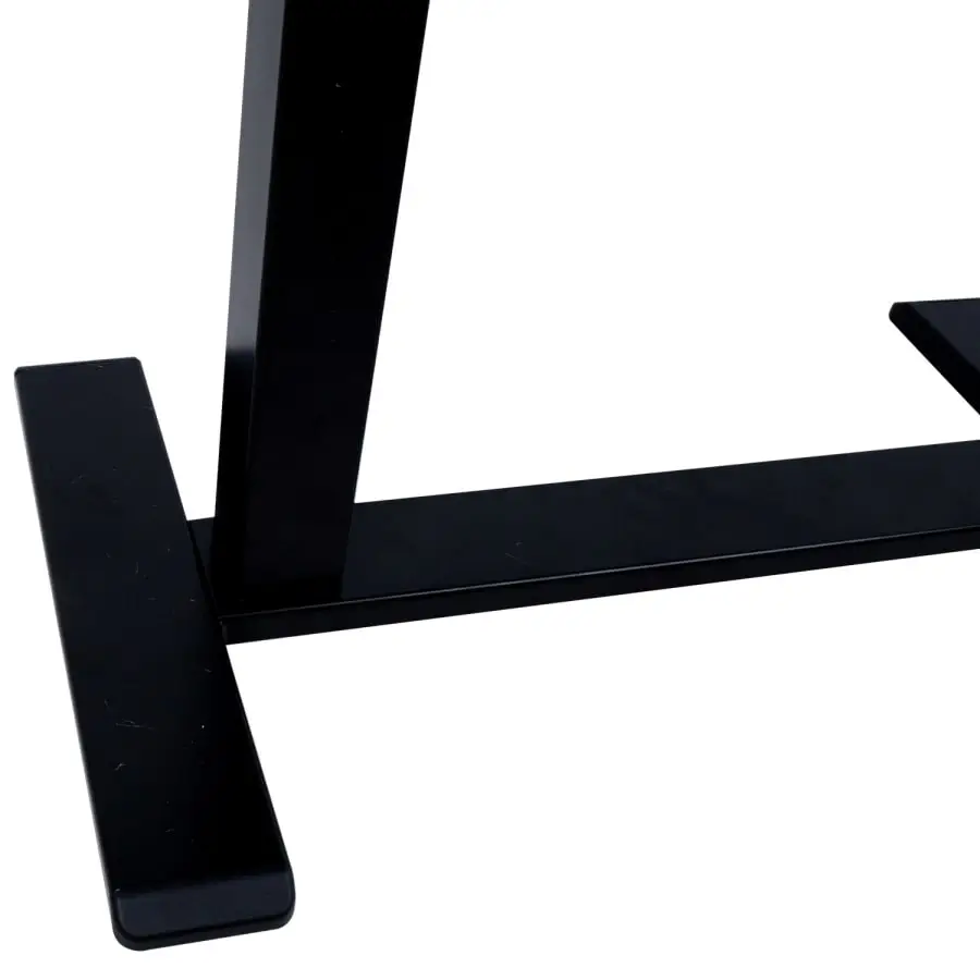 The mobile and compact, electrically adjustable desk ERGO is ideal for home or office. Thanks to the hidden wheels, the desk is easy to move and the C-leg enables the table to be positioned so that it is comfortable to use even when sitting on a bed or sofa. One electric motor and a two-stage lifting system guarantee fast, smooth and quiet (<50dB) movement. Maximum lifting speed 30 mm per second. The height of the table can be adjusted between 65-103cm. Simple control panel with two buttons. Input voltage: 100V-240V. 70x40cm dark brown melamine table top. Designed for maximum structural integrity, the frame features a double steel tube to ensure stability even at the highest heights. The metal parts are painted with black powder paint.