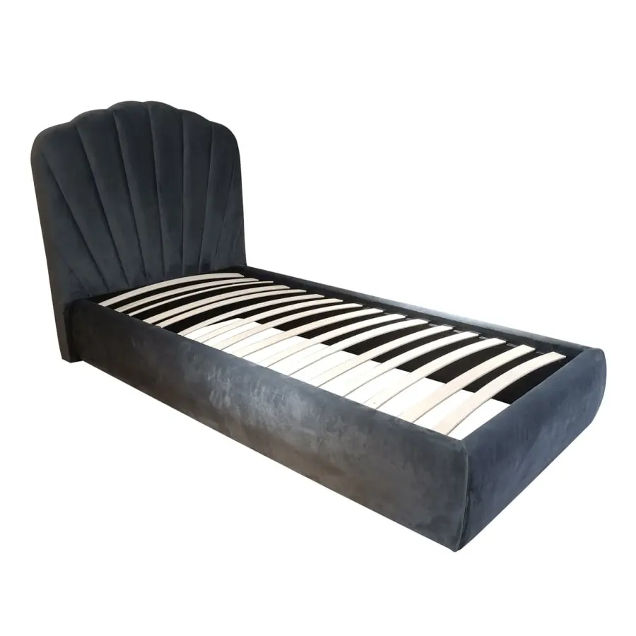 Upholstered bed with EVA mattress HARMONY DUO NEW 90x200cm, velvet. The main structure of the bed is solid pine and plywood. The frame and end are upholstered and covered with velvet fabric. The covering material is 100% polyester, 260g/m², Martindale 25,000. The slatted base is included in the set. The total dimensions of the bed are 115x220xH120cm. The set includes a double-sided spring mattress HARMONY DUO 90x200xH27cm, in a roll box. Double-sided, semi-firm mattress. Bag-sprung deluxe pocket (1.9mm/edge 2.2mm). The cover made of stretch cotton fabric is skin-friendly and also suitable for people with allergies. The spring mattress is padded with two different types of polyurethane foam – it is durable and breathable. The fabric, felt and wadding comply with the international Eco-Tex 100 standard. The mattress is packed on a roll and is therefore easy to transport home. After opening the package, it takes about 2 hours for the mattress to return to its shape.