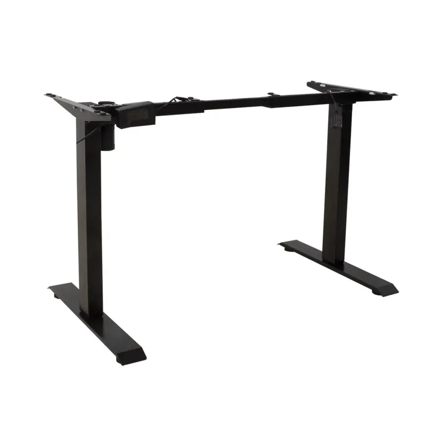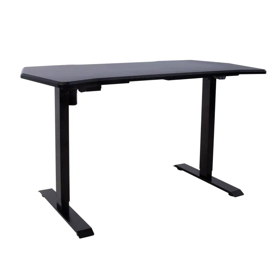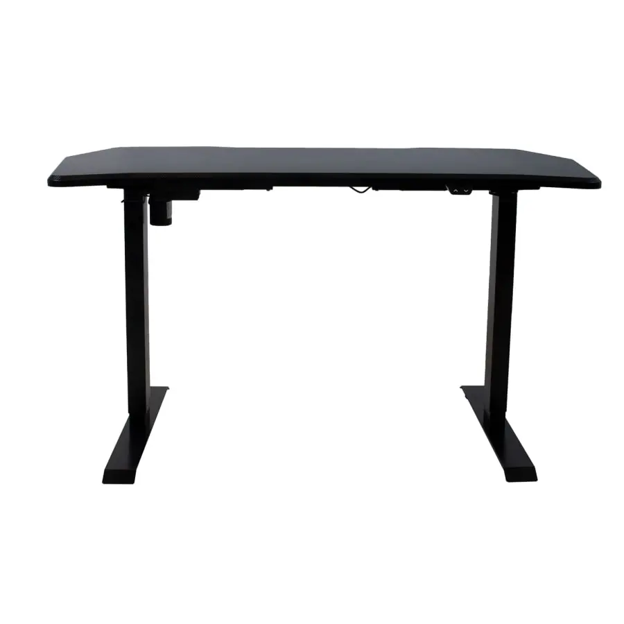 One electric motor and a two-stage lifting system guarantee fast, smooth and quiet (<50dB) movement. Maximum lifting speed 25mm per second. The height of the table can be adjusted between 71 and 121 cm. Width adjustable 85–129cm. Maximum load at full speed 70kg. Recommended work surface dimensions 50–80 X 100–160 cm. Input voltage: 100V–240V. Tabletop 140X70cm. The tabletop is constructed from chipboard with a special coating that fits perfectly with most gaming devices and helps improve mouse tracking while gaming.