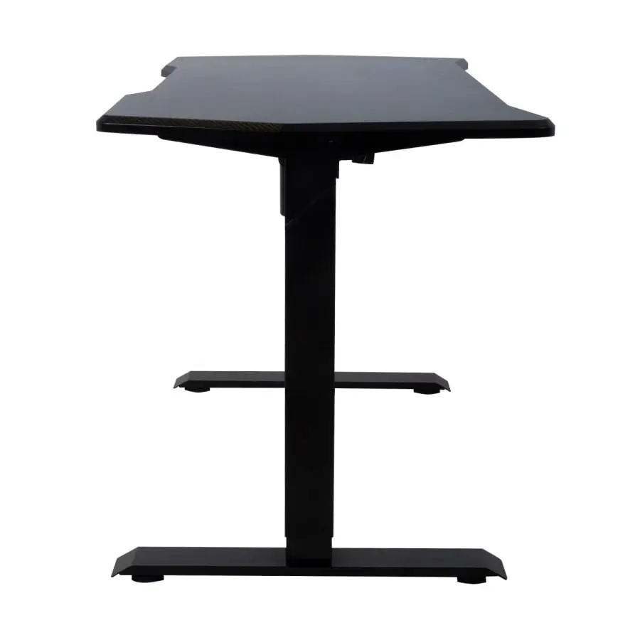 En elmotor och ett tvåstegs lyftsystem garanterar snabb, mjuk och tyst (<50dB) rörelse. Maximal lyfthastighet 25 mm per sekund. Höjden på bordet kan justeras mellan 71 och 121 cm. Bredd justerbar 85–129cm. Max belastning vid full fart 70 kg. Rekommenderad arbetsytas mått 50–80 X 100–160 cm. Inspänning: 100V–240V. Bordsskiva 140X70cm. Bordsskivan är konstruerad av spånskiva med en speciell beläggning som passar perfekt med de flesta spelenheter och hjälper till att förbättra musspårningen medan du spelar.