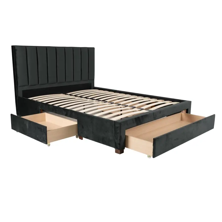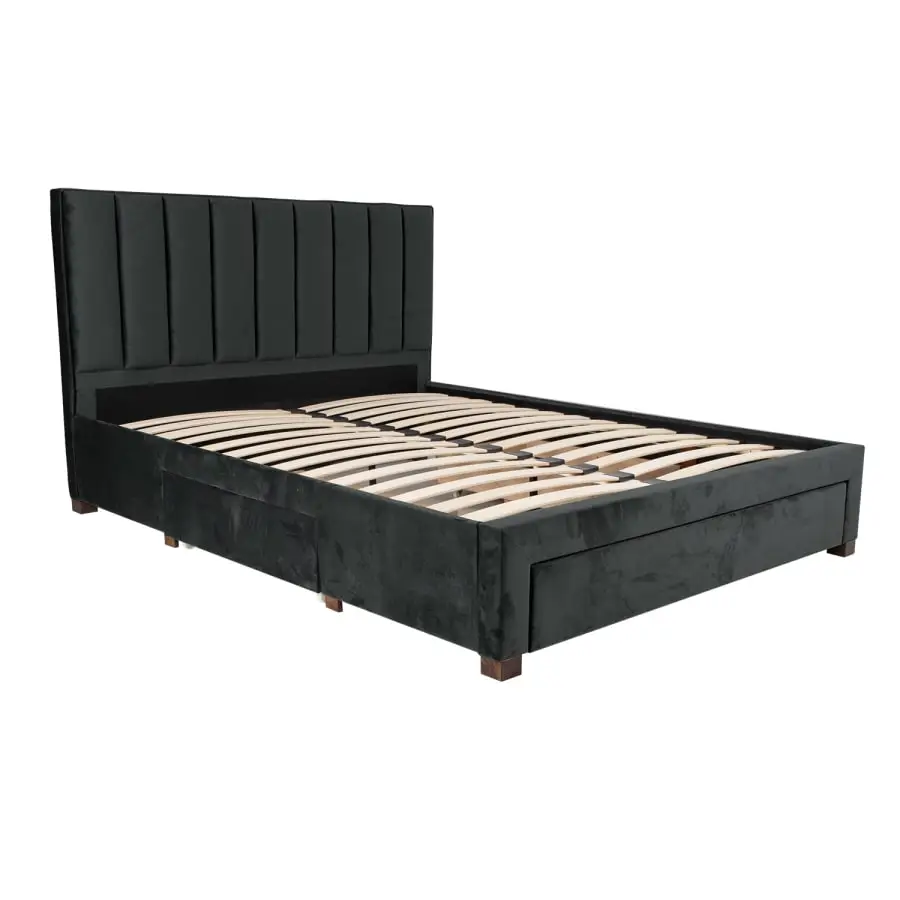 A wonderful stylish double bed Grace 160×200, without mattress. A bed upholstered in a wonderful velvet fabric, with three drawers provides additional storage space in the bedroom. The frame of the bed is made of MDF board and upholstered with gray polyester fabric. The slatted bases are included in the package.