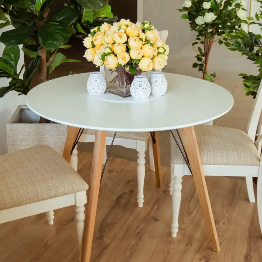 The beautiful small dining table Helena fits even a smaller space! The table legs are made of oak and the table top is made of MDF.