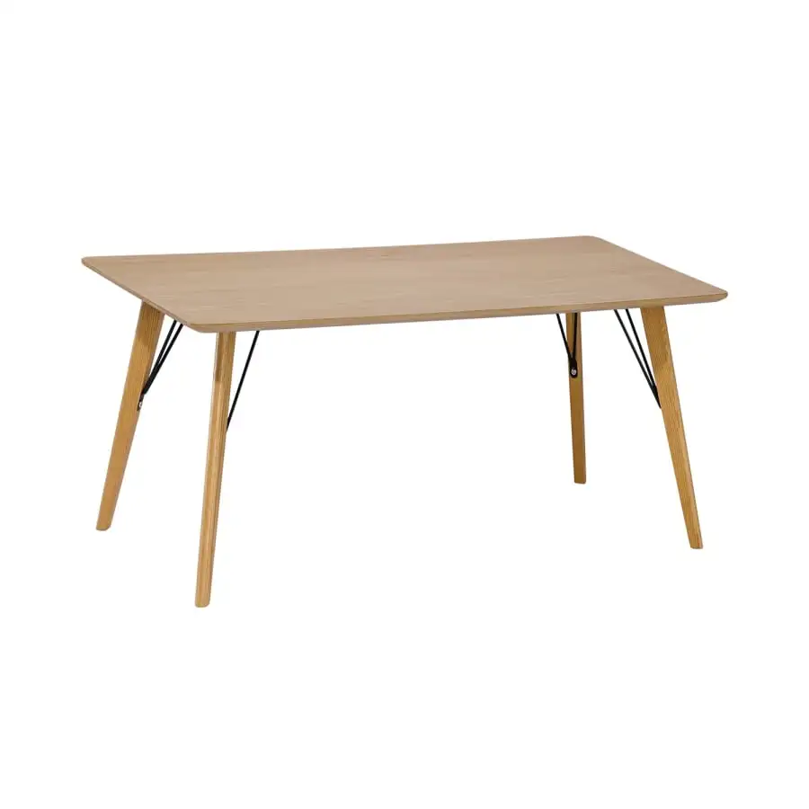 A warm atmosphere in your living room with the Helena coffee table. The table top is made of oak veneered MDF board and finished with clear varnish. Solid oak legs and metal reinforcements.