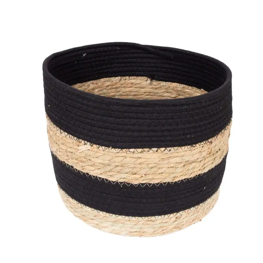 Basket KENIA-1, H34xH24cm, natural/black. Basket material: natural colored sea reed and black cotton rope.
