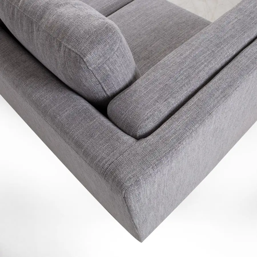 Beautiful gray sofa Lisbon. Upholstery 88% polyester, 12% viscose, 20,000 Martindale. Frame: galvanized steel frame. All sides of the frame are covered with a layer of foam. Suspension: high quality 9G zigzag springs. Upholstery: The first layer under the seat’s protective material is thick and soft polyester fiber, the second layer under it is soft polyurethane foam, which together give the seat comfort and a beautiful shape. The third layer of the suspension is a very dense, high-quality polyurethane foam that properly supports the seat. The backrest cushion is filled with channeled thick polyester fiber. Steel legs with wood imitation. Compared to traditionally made wooden frame upholstered furniture, metal frame upholstered furniture is significantly more durable and lighter.