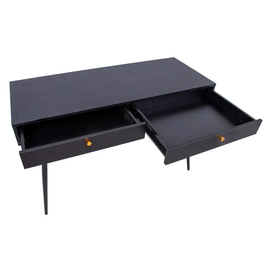 A desk is a necessary addition to every home, allowing you to use the computer more conveniently or create a practical home office space. The desk is made of melamine and the base is made of metal. The table has soft-closing drawers and copper-colored aluminum handles.