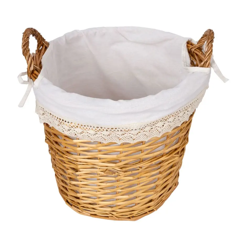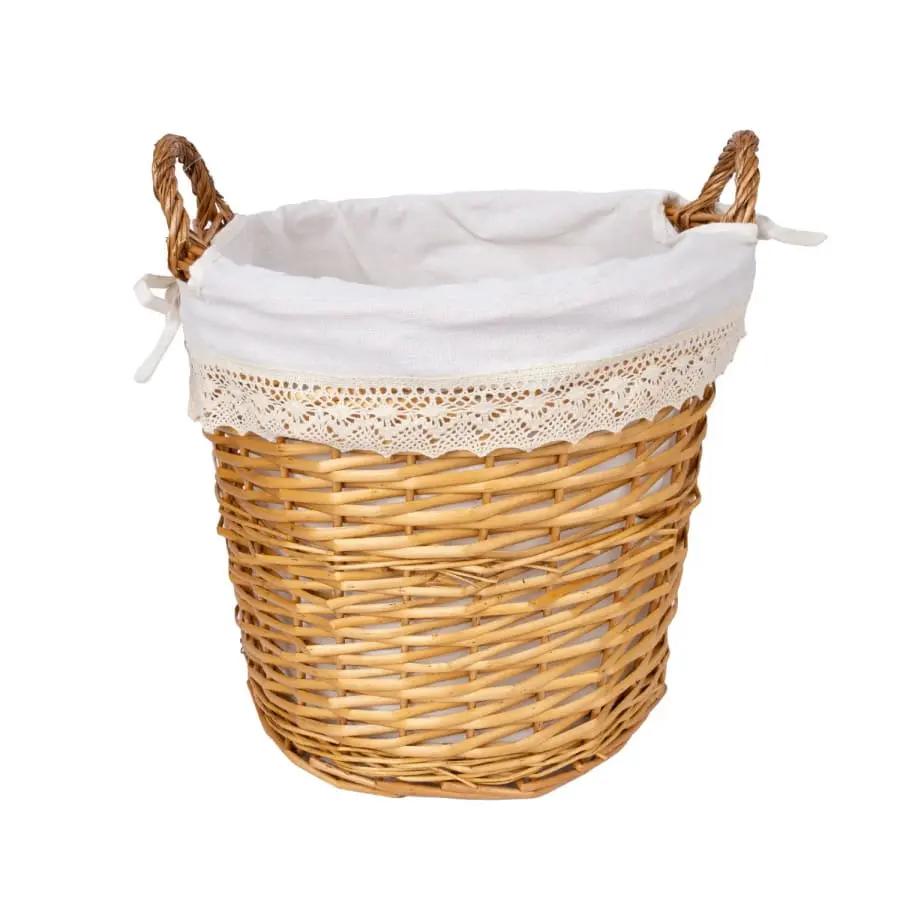 Laundry basket MAX, D40xH56cm, woven, color: light brown, lace fabric. Basket material: dyed split willow, fabric: fabric with lace.