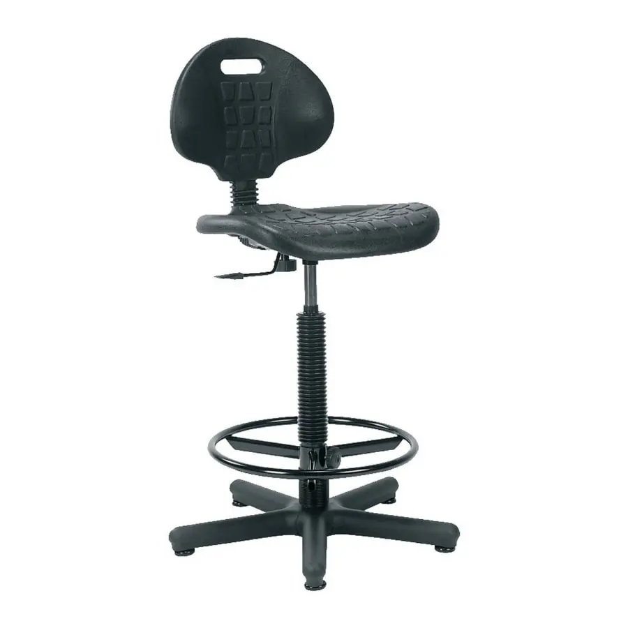 Hög arbetsbrand Nargo. Sits och rygg av halkfri plast. Bengaller av plast, D71cm. Sitshöjd justerbar med gasfjäder. Ryggstödet kan justeras i höjdled. Fotstödet är tillverkat av halkfritt material och höjden är justerbar.