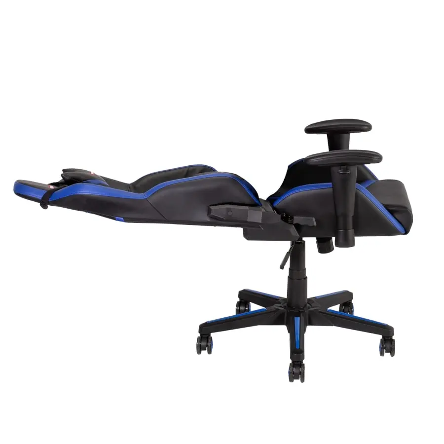 Den ergonomiska spelarstolen erbjuder en bekväm sittställning för långa spelsessioner och passar även som arbetsstol. Den mjuka och bekväma sitsen är klädd med konstläder. Avtagbara nack- och ländkuddar. Mekanism och justeringar: synkron mekanism, oberoende ryggstödets lutning 90-165°. Sitshöjd justerbar med gasfjäder 43-53,5cm. Armstöd: svart plast, höj- och sänkbart. 5-stift svart plastbenkors R35mm, plasthjul.