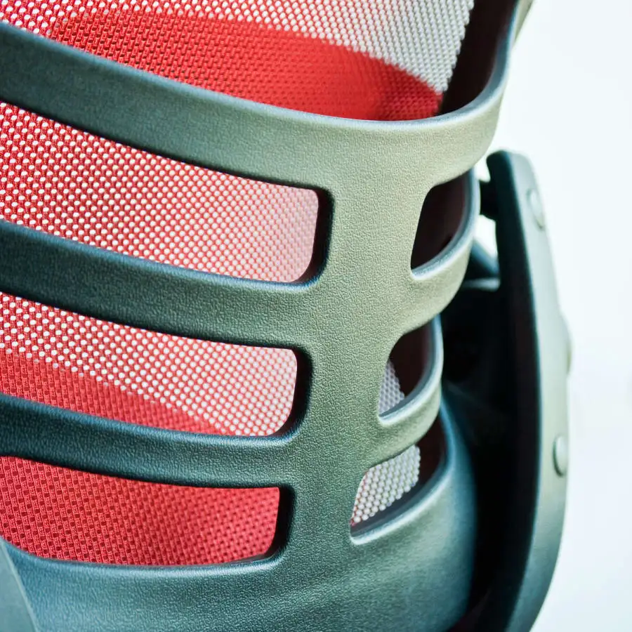Office chair Ragusa, with several color options. Rocking mechanism, seat height adjustable with gas spring. Armrests made of plastic and padded with polyester mesh fabric, possibility to raise. The height of the headrest is adjustable. Seat and back in breathable and durable polyester mesh fabric, 30,000 Martindale. Leg grid made of plastic.