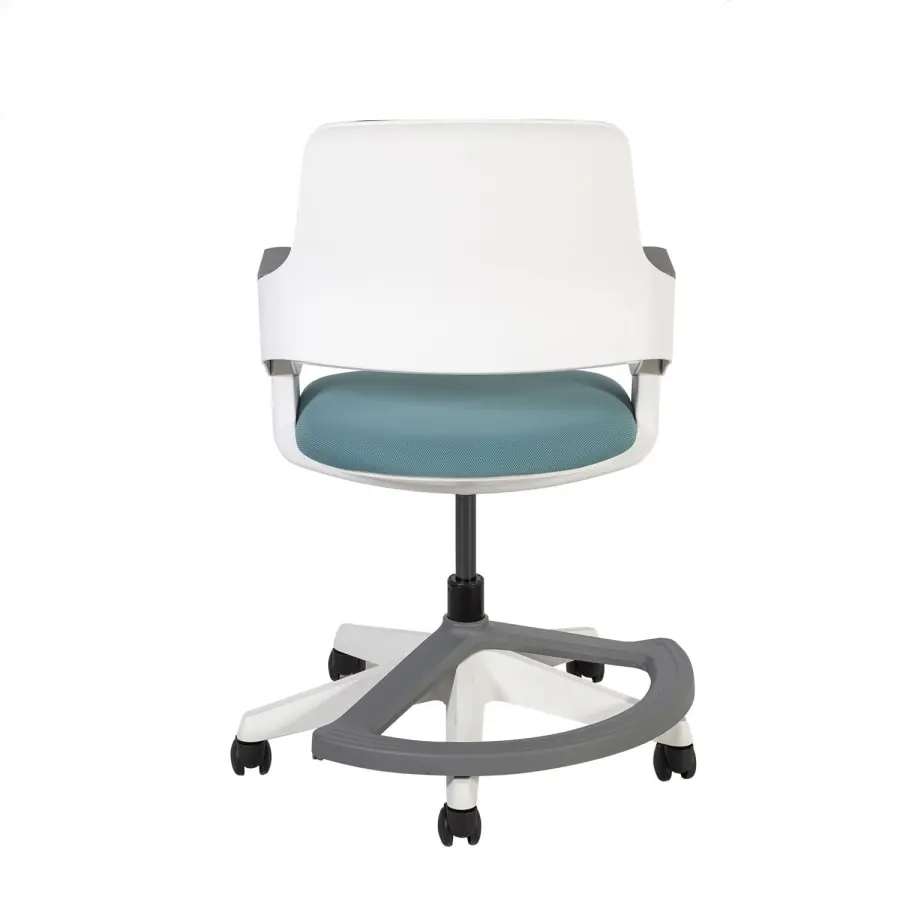 Kontorsstol för barn Rookee för 4-14 åringar. Vadderad sits och ryggstöd. Barnstolen Rookee är en kontorsstol som växer med barnet, vars ergonomi anpassas i takt med att barnet växer. Barnstolen används bäst av skolbarn i åldern 4-14 år (110-116 cm lång). Ryggstödet har 7 lägen. Höjden på stolsryggen och sitsens djup justeras efter barnets höjd. Höjden på armstöden stiger automatiskt när ryggstödet flyttas bakåt och uppåt. Det vridbara fotstödet ger komfort för barn i alla åldrar. Stolens ram, armstöden, benkorset och fotstödet är tillverkade av formsprutad plast (PP 100 % återvinningsbar). Höjden på sitsen är justerbar med en gasfjäder 38-50cm. Ryggstöd höjdjusterbart 38-43cm.
