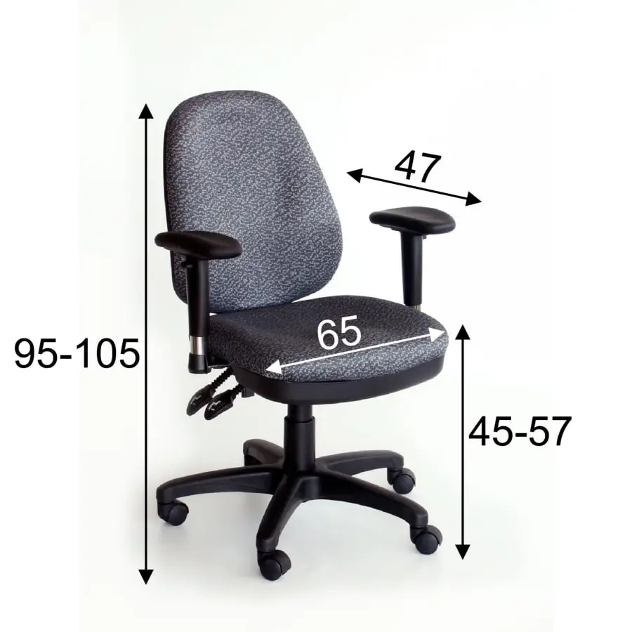 Adjustable office chair Savona, with seat and backrest upholstered in durable polyester fabric, 50,000 Martindale. The height and inclination of the backrest can be adjusted, as well as the height of the seat can be adjusted with a gas spring. Armrests made of polyurethane. The height and tilt angle of the armrests are adjustable. Leg grid: plastic, color: black. Wheels: floor-saving rubber wheels.