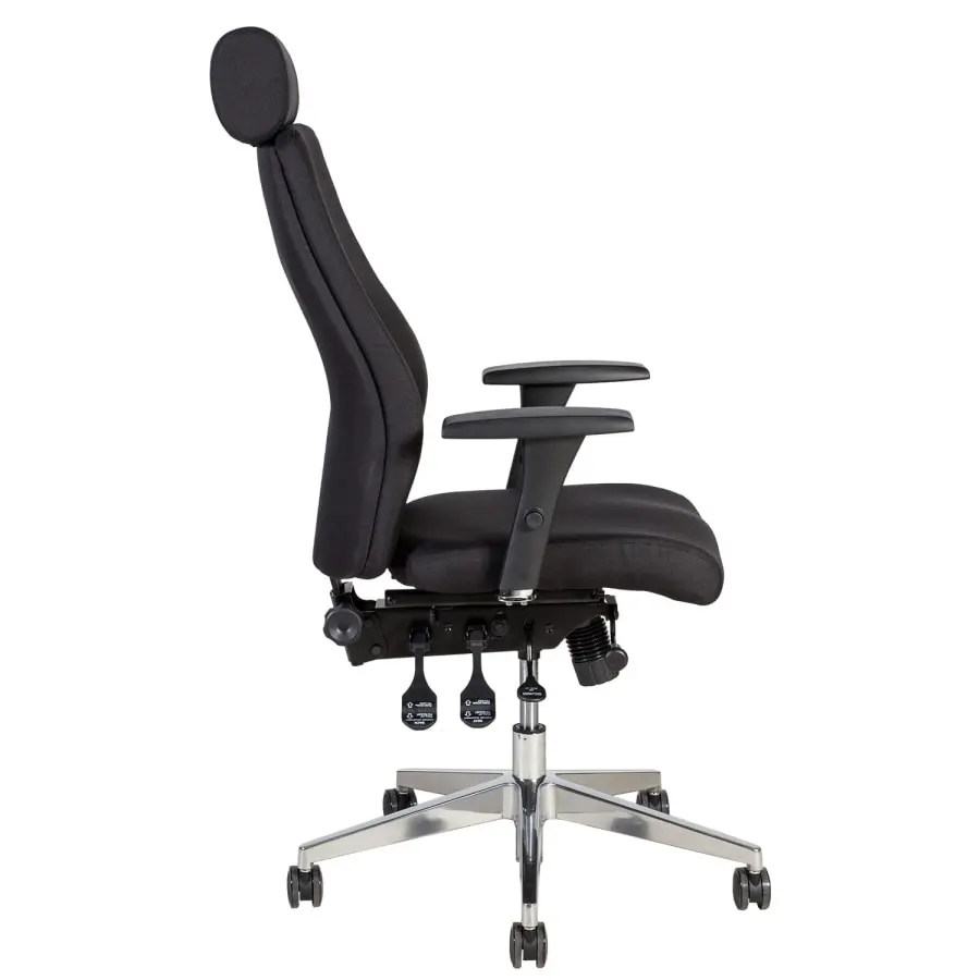 Kontorsstolen Smart Extra har en särskilt slitstark klädsel och många justeringsmöjligheter. Sits och ryggstöd klädda i slitstarkt polyestertyg, 130 000 Martindale. Multifunktionell mekanism, sitsdjup och ryggstödshöjd justerbar. Sitsens höjd kan justeras med en gasfjäder och lutningen på sitsen kan justeras. Armstöden är gjorda av polyuretan och deras höjd är justerbar. Nackstödets höjd och lutning är justerbara. Bengaller: polerat aluminiumgaller. Hjul: gummihjul D60mm, stift 11mm.