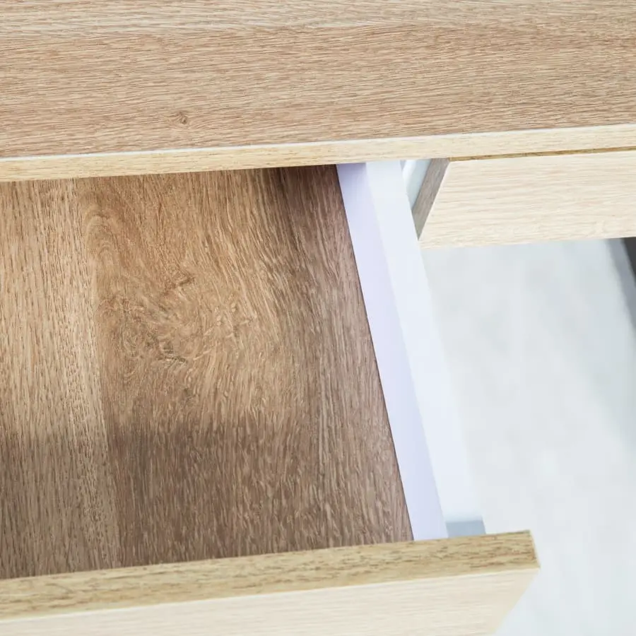 Desk Study with two drawers with metal rails and one drawer that opens from the top. The legs and frame are made of metal and the table top is made of melamine board.