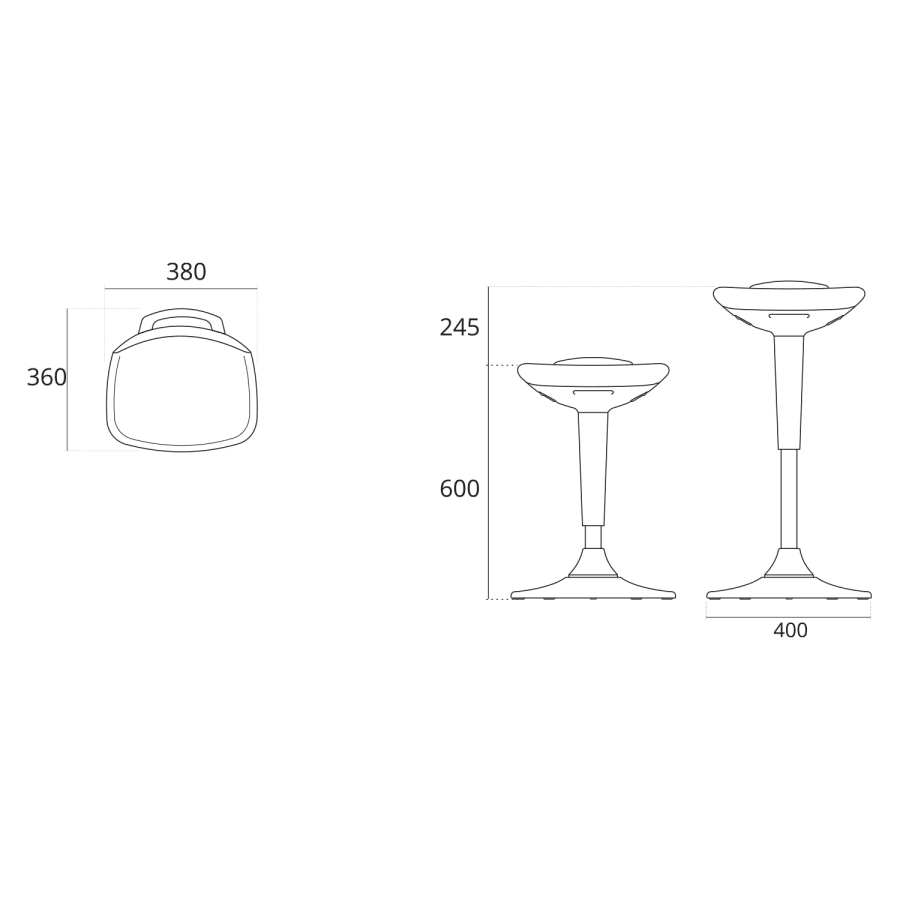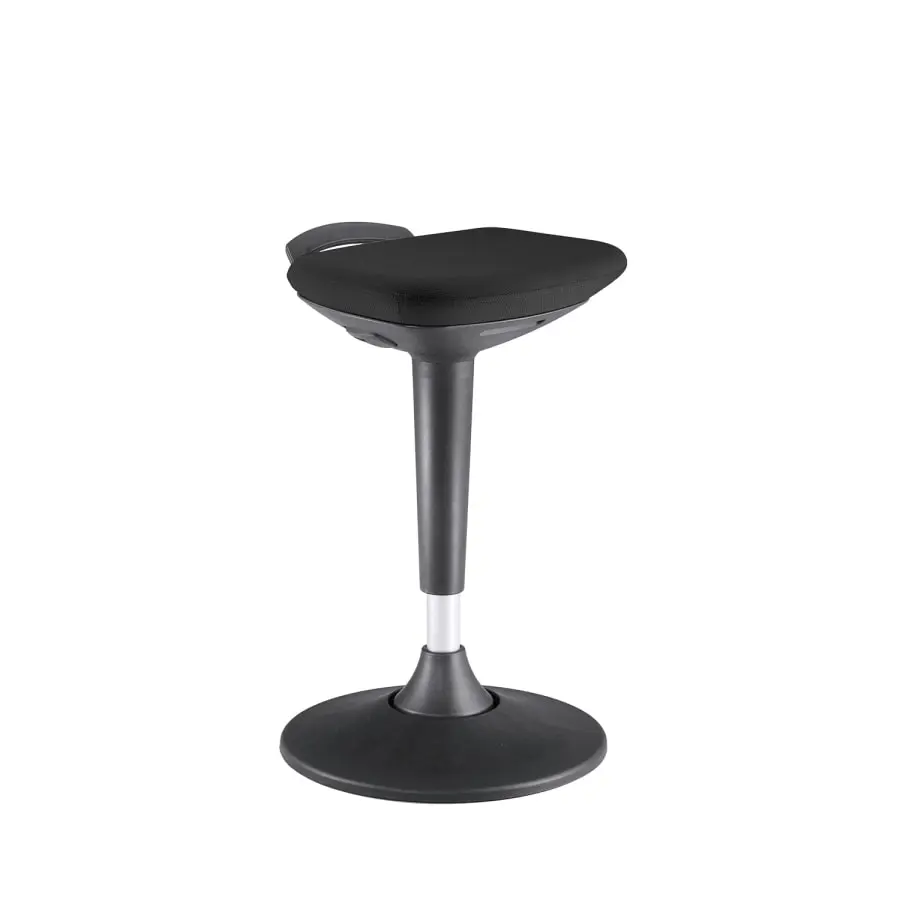 Praktisk ergonomisk kontorsstol Swing. Tack vare det runda sätet är det lätt att sitta i stolen och efter användning återgår den till sitt utgångsläge av sig själv – Självbalanserande. Den formade gummibasen på basen garanterar ett bra grepp och stolen glider inte ut under sitsen. Sitshöjd justerbar med gasfjäder 60-84,5cm.