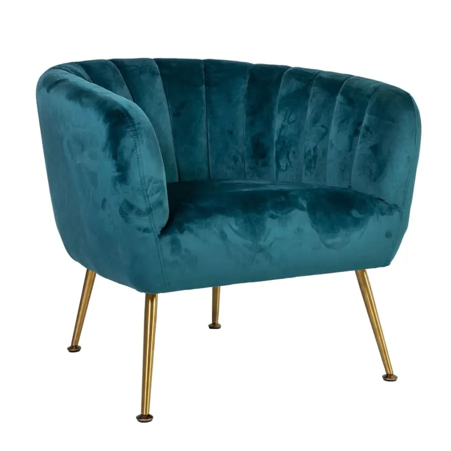 Tucker-fåtöljen är ett blickfång i ditt vardagsrum! En vackert designad, sammetslen fåtölj inbjuder dig att sitta ner. Fåtöljens utseende kompletteras av de vackra guldfärgade stålbenen.