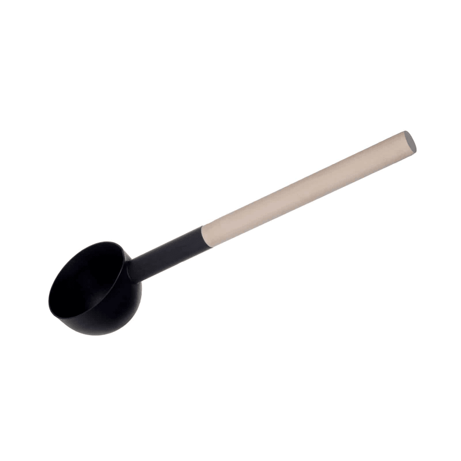 The stylish, Scandinavian-style Opa LUMO ladle complements the sauna bucket of the same series. The bucket is made of aluminum and is finished in black. The handle is birch. The capacity of the ladle is 4 dl, the length of the handle is 33 cm and the total length of the ladle is 43 cm.
