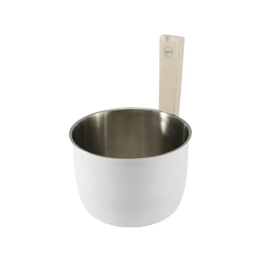 The modern white sauna kiulu suitable for today’s sauna world is made of stainless steel, the inner surface is brushed to a matte finish. Diameter 23 cm, volume 5 liters.