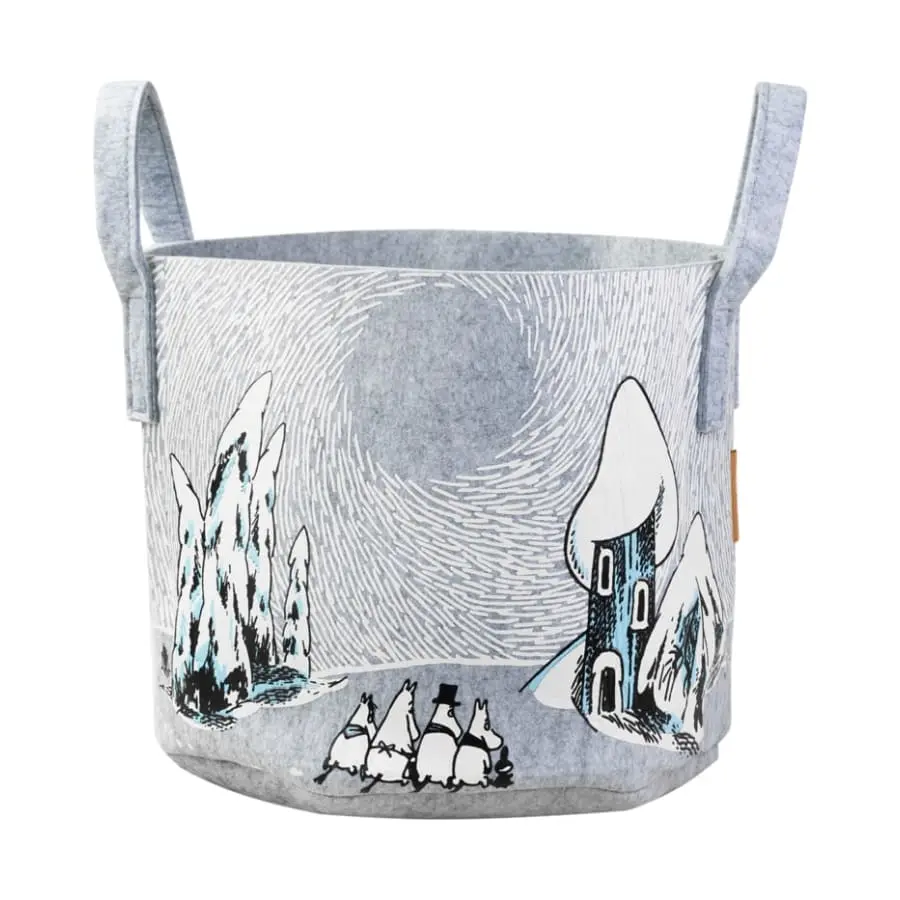 There is magic in Moomin valley winter! If you wake up in the middle of hibernation, anything can happen in the snowy Moomin Valley! The Winter in Moomin Valley storage basket made of r-PET recycled plastic is a versatile and practical interior product, whose felt-like material withstands hard use.