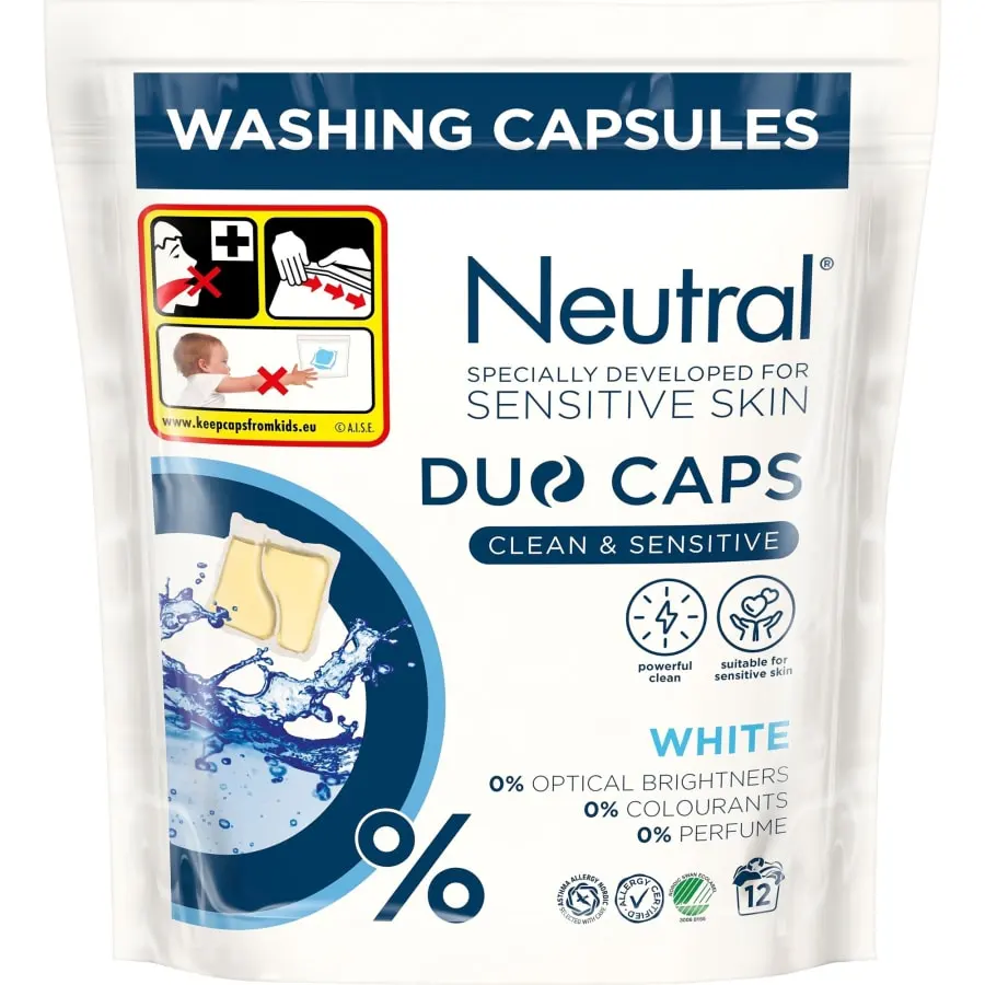 Ingredienser: 15-30 %: Nonjoniska tensider, Tvål. 5-15 %: Anjoniska tensider. <5 %: Enzymer, Fosfonater. MEA Palmkerneleate, Mono Propylene Glycol, Glycereth-6-cocoate, Glycerol, Sodium Laureth Sulfate, PVA, Sodium Diethylenetriamine Pentamethylene Phosphonate, Protease, Amylase, Lipase, Denatonium Benzoate.