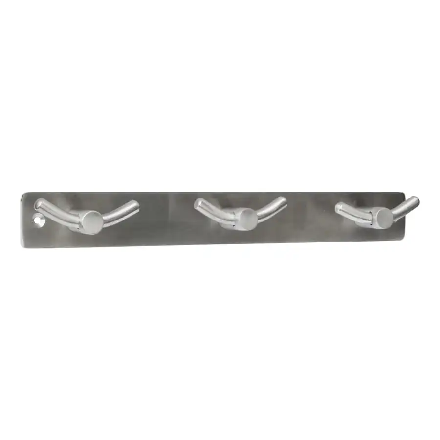 Coat rack with 3 hooks. Material: rst. The package includes screws. Dimensions 270 x 34 mm.