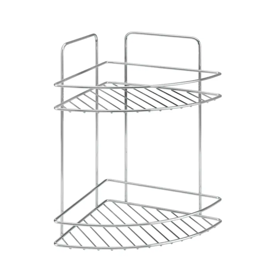 Chrome-plated 2-level corner shelf. Dimensions 21x21x35 cm.
