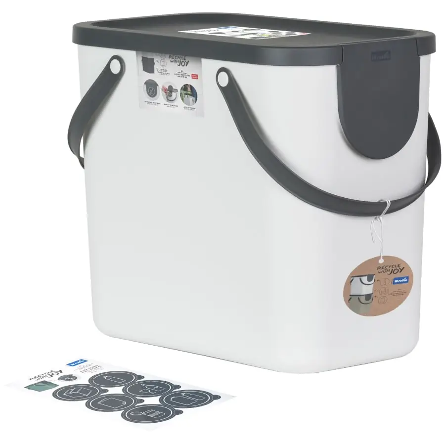 - Sex klistermärken medföljer som du kan markera med vilket material som samlas i varje container.